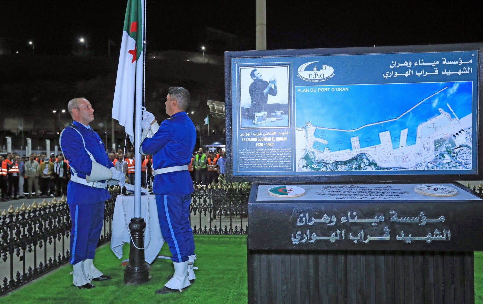 As part of the celebrations commemorating the 71st anniversary of the outbreak of the Glorious Liberation Revolution, Oran Port Company, headed by Mr. Hadji Mohamed, CEO of the Company, organised a special celebration yesterday evening to mark this precious national occasion. The ceremony was attended by the border police, customs authorities, civil protection services, and Algerian Islamic Scouts, as well as port executives and workers, in an atmosphere imbued with national spirit and pride in belonging to the homeland. The event included the reading of the 1st of November statement and the Fatiha prayer for the souls of the noble martyrs of the liberation revolution. The national flag was raised and the national anthem was played in honour of the sacrifices of our heroes who liberated the country from colonialism. Ships and tugboats in the port of Oran sounded their horns in celebration of this glorious historical anniversary, in a solemn and symbolic scene. This celebration was an opportunity to renew the pledge to continue the march of construction and giving, and to draw inspiration from the values of the revolution in the service of the new Algeria.